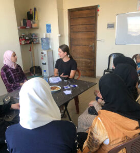 Amanda Hylland Spjeldnæs på kvinnesenteret i Bar Elias, Libanon. Foto: Thea Munkeby i Circle of Wellbeing.