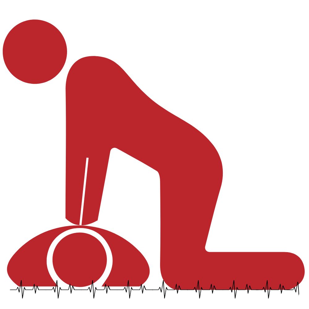 • Gjere basal hjarte-lungeredning (HLR) ved hjartestans. Trykk hardt og raskt midt på brystet til personen. 30 kompresjonar og tre innblåsingar.