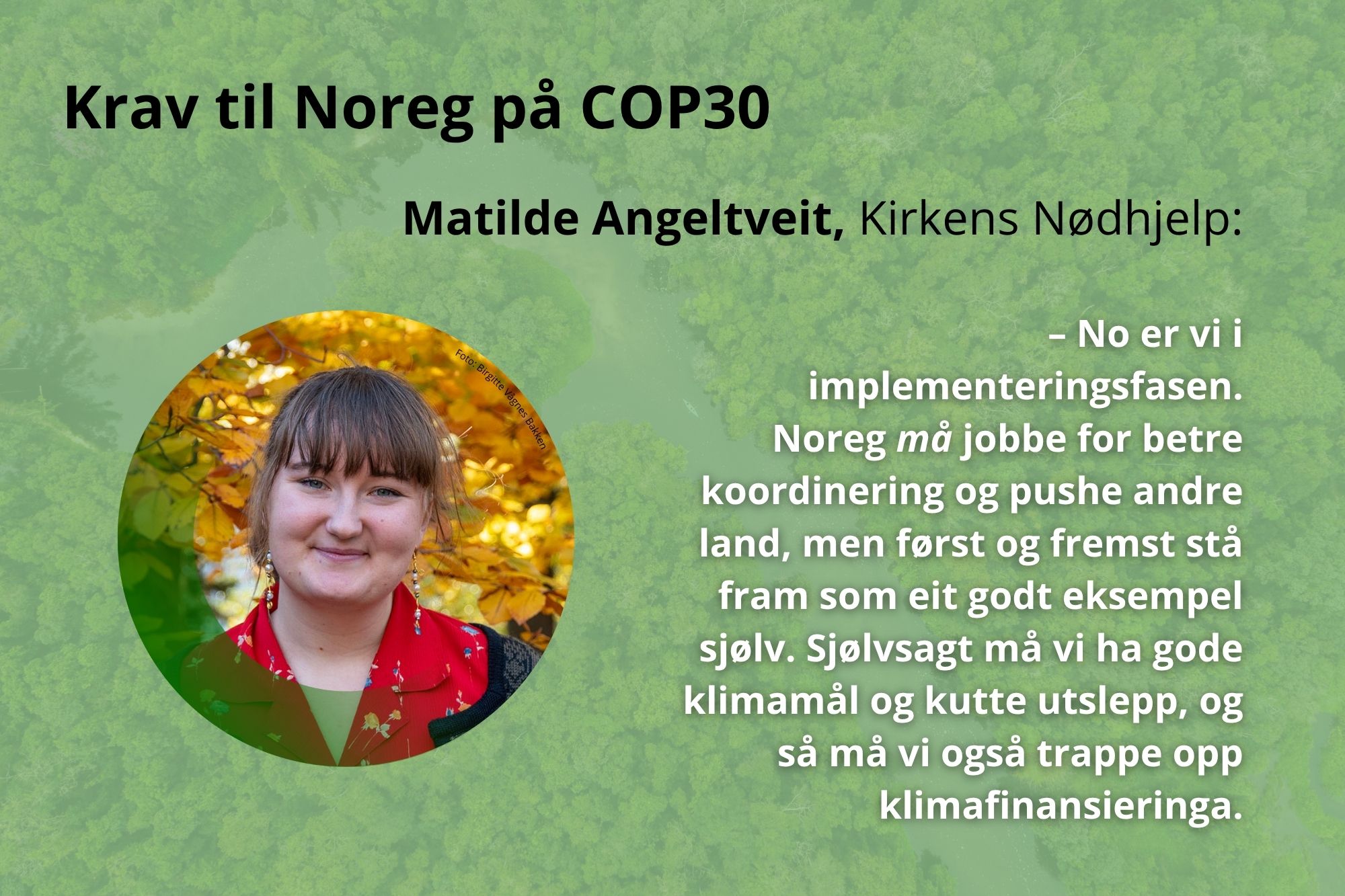 – Klimatilpassing har vore ein av dei tinga som har blitt underkommunisert og gløymt kvart einaste klimatoppmøte, så vi håpar at det blir litt meir fokus på det no, forklarar Matilde Angeltveit i Kirkens Nødhjelp.