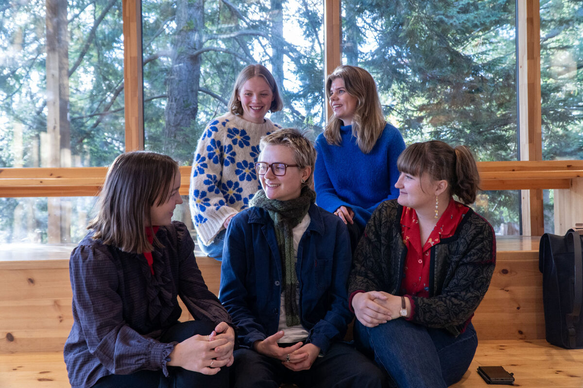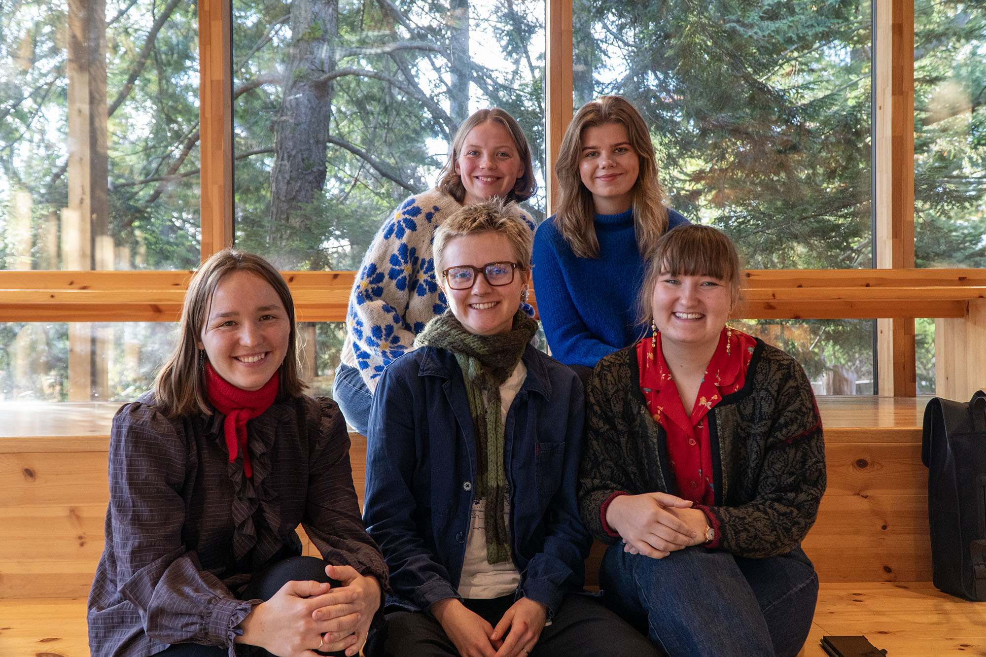 Framme frå venstre: Thea Birgitte Erfjord (Spire), Mikkel Inchley (Natur og Ungdom) og Matilde Angeltveit (Kirkens Nødhjelp). Bak frå venstre: Liva Nordhus og Helene Bakken Middelthon (KFUK-KFUM Global). Foto: Birgitte Vågnes Bakken
