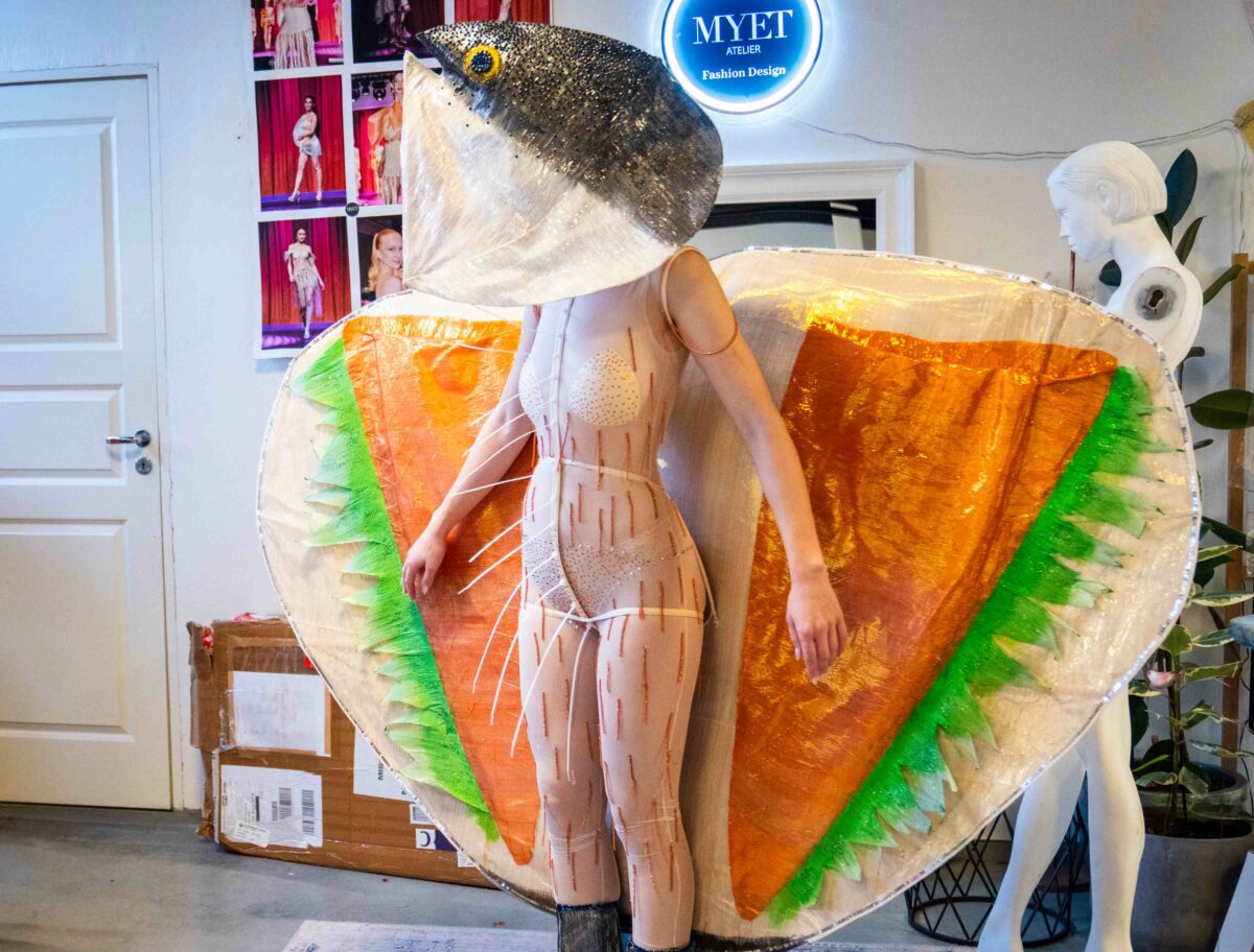 Derfor kom ho fram til at det måtte bli eit laksekostyme.