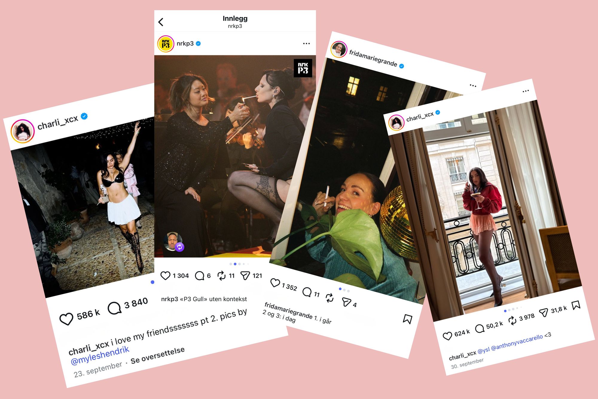 Artisten Charli XcX, norske SA_G og påverkar Frida Marie Grande, er blant dei som har fyrt opp ein sigarett i sosiale medium. | Foto: Instagram