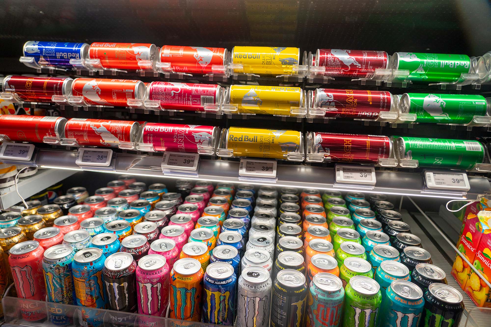 Frå 1. januar må du vera 16 år gammal for å få kjøpe energidrikk. Foto: Heiko Junge / NTB / NPK