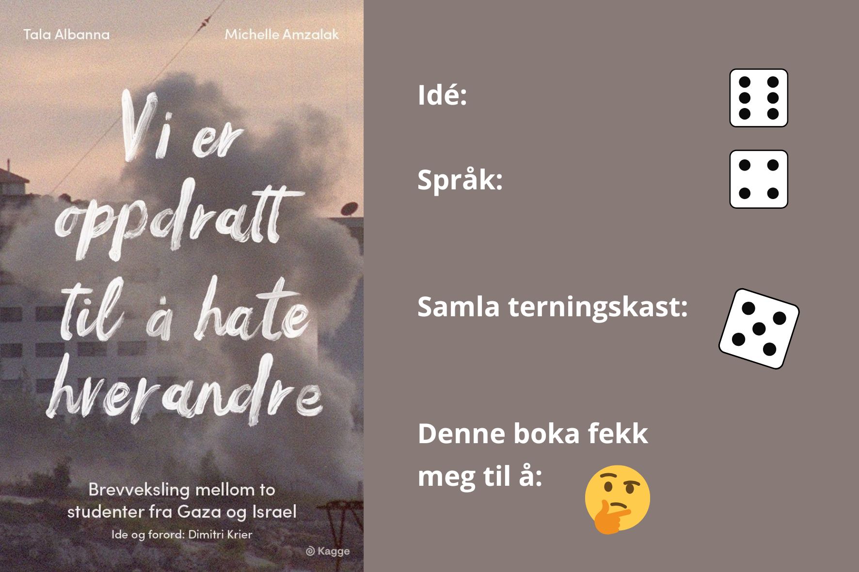 Breva til dei unge kvinnene Tala Albanna og Michelle Amzalak gjev eit vindauge inn til både Palestina og Israel. Boka Vi er oppdratt til å hate hverandre er ein god plass å starta dersom du vil forstå Gaza-krigen betre.