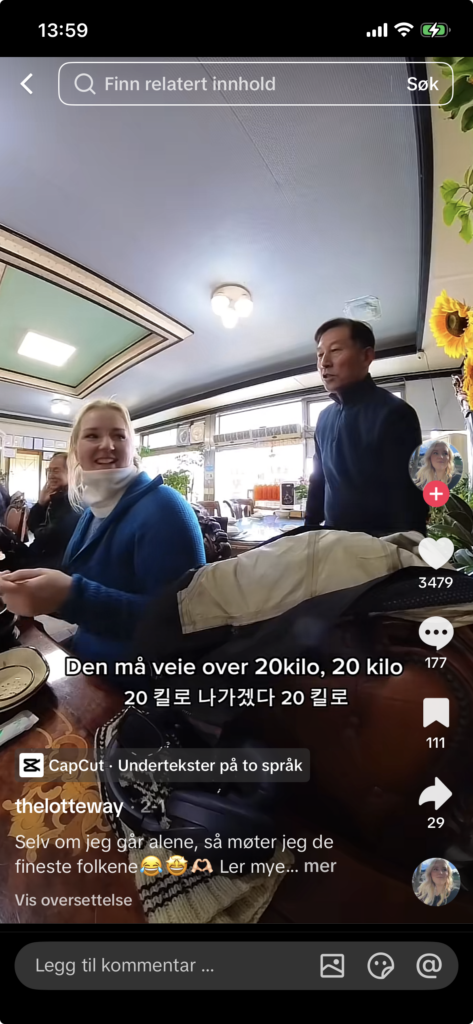 Ho utelukkar likevel ikkje å gjere noko artig når ho kjem fram, som å besøke fornøyelsesparken i Busan med folk ho blir kjent med gjennom TikTok.