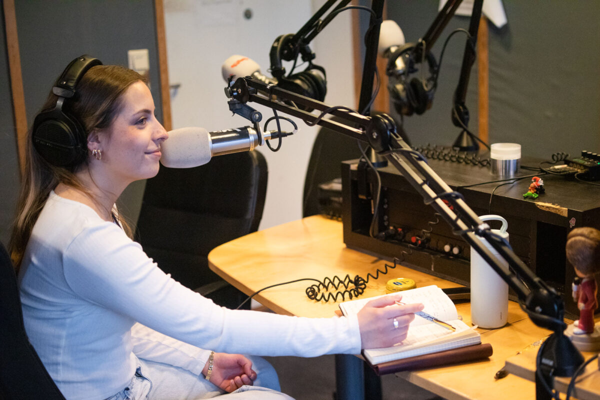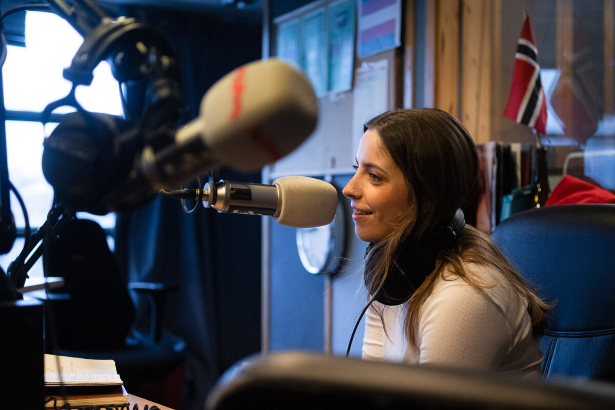 – Eg visste at studentradioen kom til å vere full av folk som var glade for å vere der, og at det difor ville vere ein god vibe – i staden for å prøve å snakke med folk på bussen, som er ulovleg, seier ho og ler.