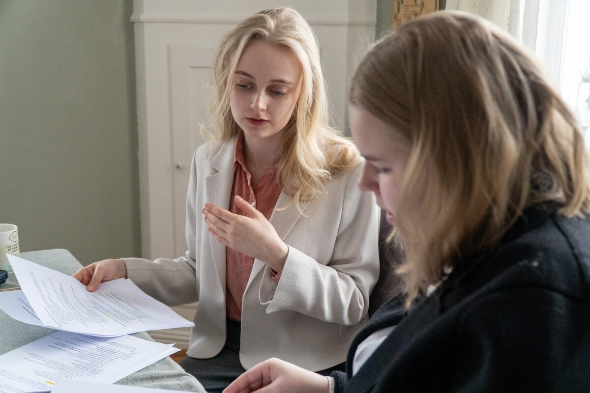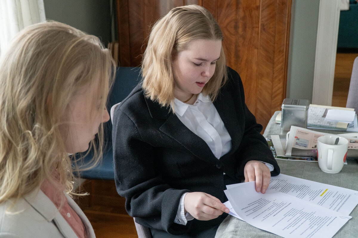 Saman med Cathinka Bergem (20) førebur ho seg til eit møte på den pakistanske ambassaden i Noreg.