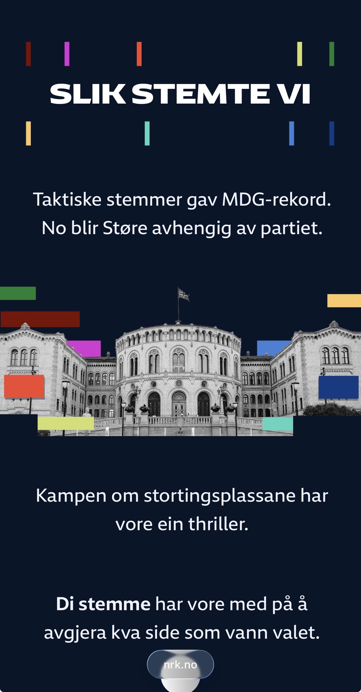 NRK brukte nynorsk i fleire store grafiske satsingar. Skjermbilete NRK.no
