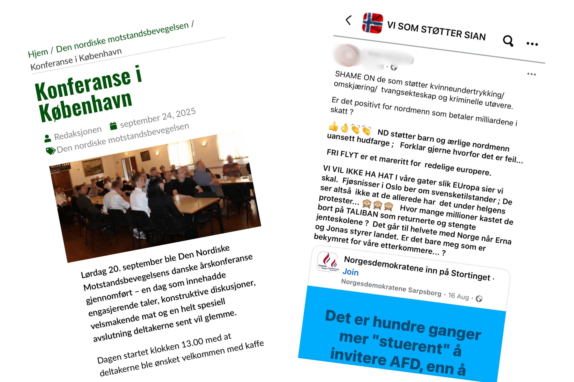 Dette tillèt ei oppbrygging av ytre høgre og høgreekstremt hat, som til dømes rasisme, kvinnehat, antisemittisme og homofobi. Det blir delt rasistiske kommentarar, innlegg der prideflagg blir brent på video, Facebook-grupper for høgreekstreme grupper, som DNM (den Nordiske Motstandsbevegelsen), Alliansen, og SIAN. Derimot tørr ikkje desse høgreekstremistiske grupperingane å vise seg offentleg og forheld seg til lukka og krypterte chattegrupper. Å bli innblanda i ei sånn gruppering er lett for unge menn og ungdommar, som opplever ei form for utanforskap eller einsemd.